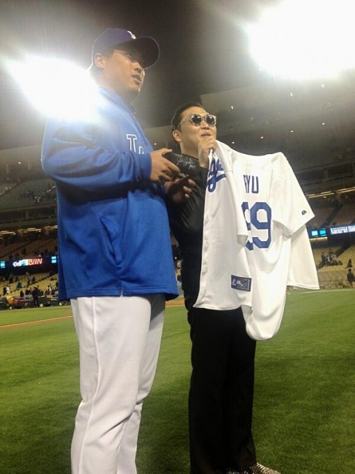가수 싸이가 미국 프로야구 메이저리그 LA 다저스 류현진 선수와 만났다.
