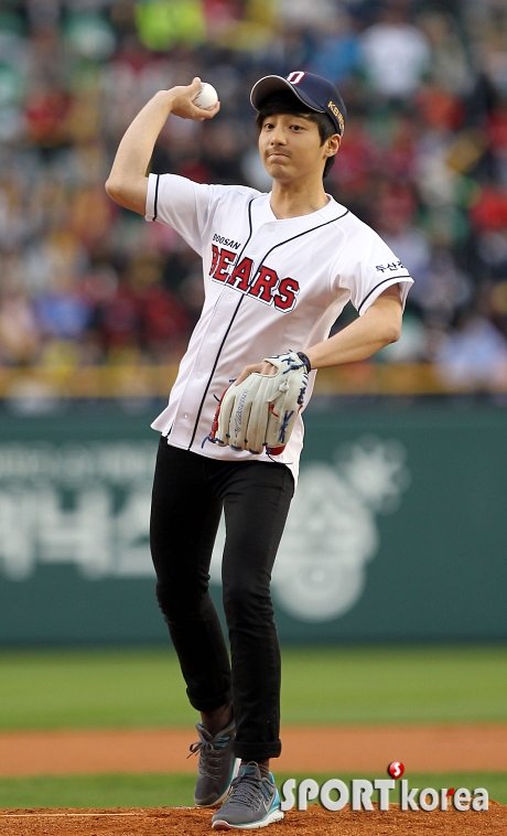 1일 오후 서울 잠실야구장에서 열린 `2013 한국야쿠르트 세븐 프로야구` 두산 베어스와 KIA 타이거즈의 경기에서 로이킴이 시구하고 있다.