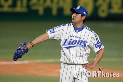 `2013 한국야쿠르트 세븐 프로야구` 삼성 라이온즈와 넥센 히어로즈의 경기가 1일 오후 대구 시민야구장에서 열렸다. 5회초 넥센 선두타자 김민성에게 솔로홈런을 허용한 삼성 선발 장원삼이 아쉬워하고 있다.