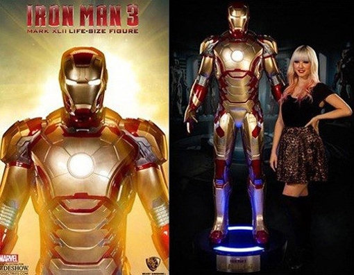 공개된 사진에는 영화 ‘아이언맨3’에 등장하는 수트 ‘마크42’를 입은 피규어 모습이 담겨 있다. 이 피규어는 무려 2m 크기에 무게 47.6kg에 달한다. 또 가슴 장식에는 LED가 부착돼 빛을 낼 수 있다고 한다. 이 피규어의 가격은 한화 950만 원 정도라고 한다.