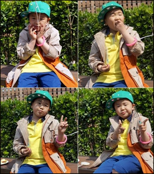 사진 속 윤후는 꽃받침, 브이자 등 다양한 귀요미 포즈를 취하고 있다. 또 햄버거를 열심히 먹는 윤후의 먹방도 포착됐다.