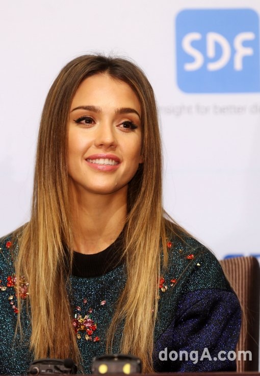 할리우드 배우 제시카 알바가 3일 오전 서울 구로구 쉐라톤 디큐브시티에서 열린 ‘SDF 서울 디지털포럼’에서 포즈를 취하고 있다.