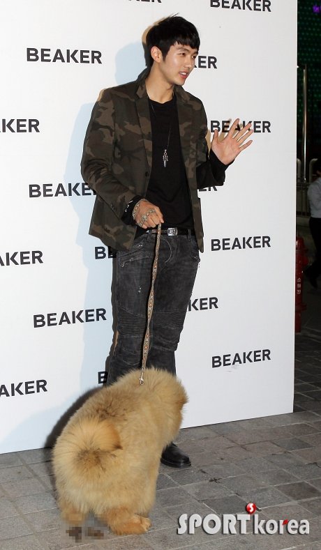 2AM 임슬옹이 3일 오후 서울 청담동 비이커 청담플래그십 스토어에서 열린 ‘반려동물과 함께하는 BEAKER PET 팝업스토어 오픈 이벤트’에 참석해 반려견 ‘탱크’와 함께 포즈를 취하다 탱크가 그 자리에서 실례를 하고 있다.