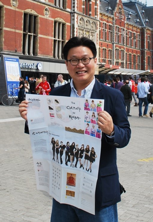 한국 홍보 전문가 서경덕 성신여대 교수가 소녀시대가 모델로 등장하는 ‘한국 홍보 안내서’를 네덜란드 암스테르담 중앙역 광장에서 관광객을 대상으로 3000장을 지난 주말 배포했다고 7일 밝혔다.