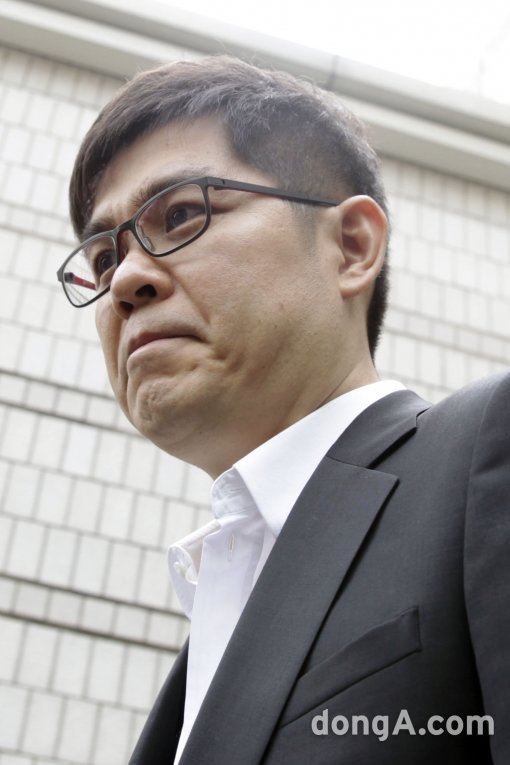 상습 도박 혐의를 받고 있는 방송인 김용만이 7일 오전 서울 서초구 서울중앙지방법원에서 열린 첫 공판을 마치고 나오고 있다. 김용만은 해당 도박장 사이트 운영자를 비롯한 4명의 피고인들과 함께 출석해 검찰측의 심문을 받는다.