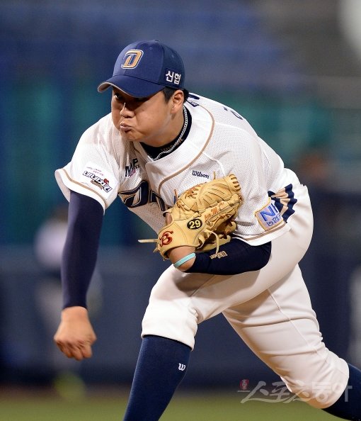 ‘2013 한국야쿠르트 세븐’ 프로야구 한화이글스 대 NC다이노스 경기가 7일 창원 마산야구장에서 열렸다. 8회초 2사 만루에 등판해 무실점으로 막은 NC 이민호가 역투하고 있다.
