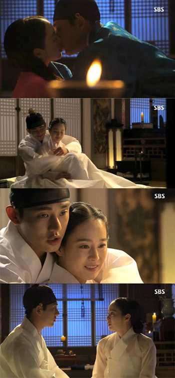 옥정과 이순은 애틋한 마음으로 서로를 끌어안으며 첫날밤을 가졌다.