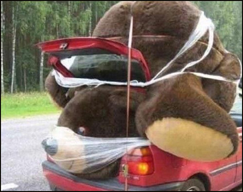 공개된 사진에는 커다란 곰돌이 인형을 실은 자동차의 모습이 담겨 있다. 특히 여자친구 선물로 준비한 큰 인형을 운반하기 위해 트렁크도 닫지 못하고 끈을 묶어 고정해 놓은 모습이 웃음을 자아냈다.