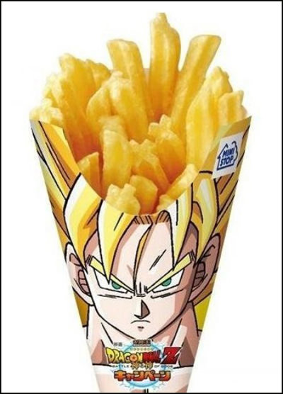 공개된 사진에는 인기 애니메이션 ‘드래곤 볼’주인공인 손오공의 머리가 그려진 감자튀김 포장지가 나온다. 그런데 손오공의 삐죽빼죽한 노란 머리 부분이 감자튀김으로 대체되어 있어 웃음을 자아냈다.