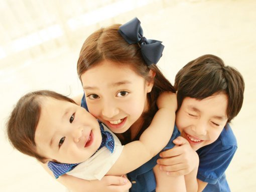 베이비 스튜디오 ‘페퍼민트 스튜디오’ 부천점이 13일 공개한 사진 속 김수정은 동생 동환, 동우 군과 함께 다정한 포즈를 취하고 있다.