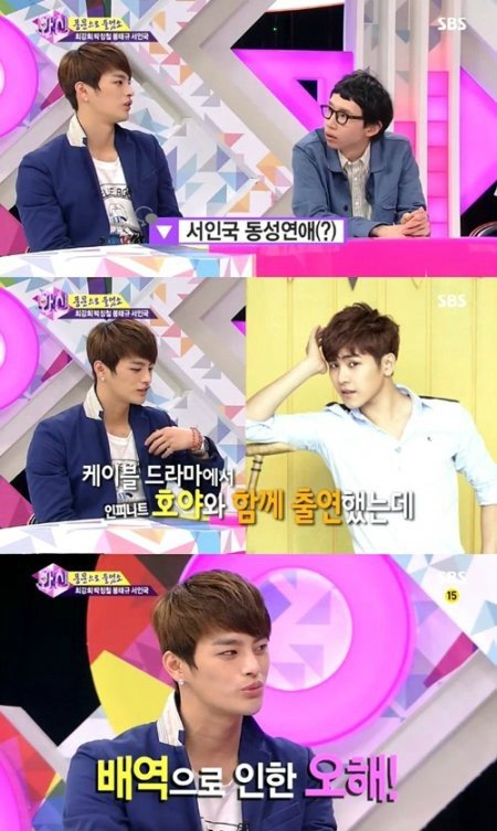 서인국은 "'응답하라 1997'에서 아이돌그룹 인피니트의 호야가 나를 좋아하고, 가수 케이윌 뮤직비디오에서 안재현을 짝사랑하는 역할을 했다"며 "그러면서 게이설이 생겼다"고 설명했다.