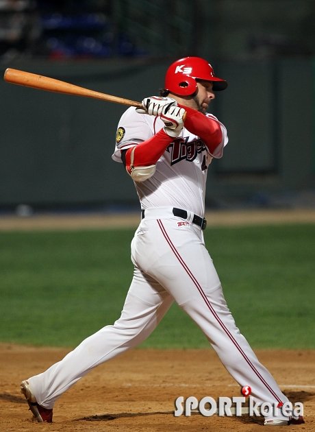 15일 오후 광주 무등야구장에서 열린 `2013 한국 야쿠르트 세븐 프로야구` KIA 타이거즈와 SK 와이번스의 경기 10회말 KIA 투수 앤서니가 타석에 등장해 방망이를 휘두르고 있다. 결과는 삼진 아웃.