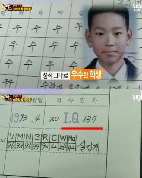 강동원의 중학교 성적표에는 '수'와 '우'로만 이루어져 눈길을 끌었다. 또 IQ는 137이라고 적혀 있어 눈길을 끌었다.