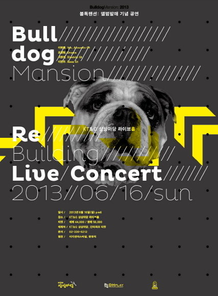 밴드 불독맨션의 컴백 콘서트 ‘리빌딩(Re-Building)’이 6월 16일 KT&G 상상마당 라이브홀에서열린다. 2004년 잠정적으로 활동을 중지한 불독맨션이 9년 만에 내놓은 앨범이다.