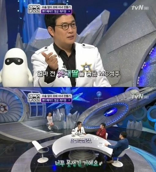 김성주는 “얼마 전에 셋째 딸을 낳았다. 솔직히 말해서 내 딸인데도 너무 못생겼다. 집사람은 되게 예쁘다더라. 태어난지 100일 됐다”고 걱정했다.