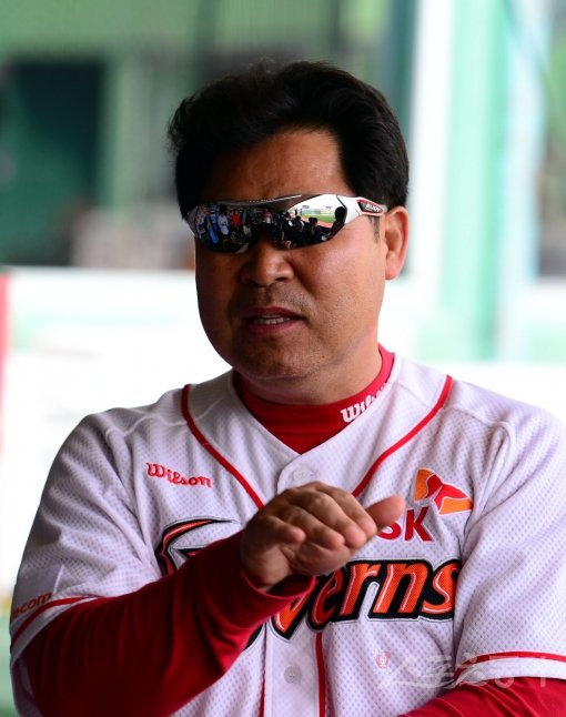 SK 이만수(사진) 감독은 현역시절 타자로는 격한 세리머니, 포수로는 끝없는 트래시 토크(경기 중 상대 타자를 끝없이 약 올리는 행위)로 유명했다. 당연히 수많은 빈볼이 날아들었다. 역대 12위인 개인통산 118개의 사구 중 절대 다수가 빈볼이었다는 ‘증언’도 나오고 있다. 그리고 한 경기에 무려 4차례나 빈볼에 맞았던 숨겨진 진기록도 지니고 있었다.