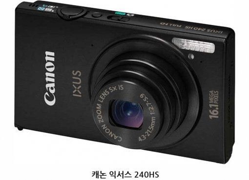 240HS는 1610만의 고화소 CMOS 센서를 탑재해 고감도에서도 저노이즈의 사진을 촬영할 수 있으며, 캐논 고유의 DIGIC5 프로세서를 탑재하고 있어 정확한 화이트 밸런스 조절 및 고용량의 이미지를 빠르게 처리할 수 있다. 이에 더해 피사체와 촬영 환경을 58가지 장면으로 자동 인식하여 최적의 촬영이 이루어질 수 있도록 카메라 설정을 자동으로 맞추어 주는 스마트 오토 기능을 탑재해 초보자 또한 다양한 앵글의 사진을 손쉽게 촬영할 수 있는 것이 특징이다. 가격은 33만 2000원.