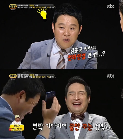 김구라는 23일 방송된 JTBC ‘썰전’에서 정몽준 의원과 절친한 사이인 김흥국과의 깜짝 전화연결을 시도했다.