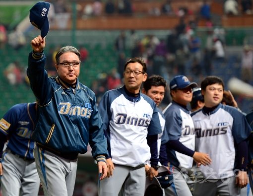 4승1무 17패에서 10승1무9패로! 4월 연이은 졸전으로 걱정을 샀던 신생팀 NC는 5월 전혀 다른 팀으로 변신했다. 에이스급 투수들을 집중적으로 만났지만, 그 덕에 오히려 더 빨리 힘과 경험을 키워 상위권 팀도 경계하는 팀으로 성장했다. NC 김경문 감독(왼쪽 끝)의 흔들림 없는 선 굵은 야구와 쓸 만한 선수를 발굴해내는 안목도 단단히 한 몫을 하고 있다. 스포츠동아DB