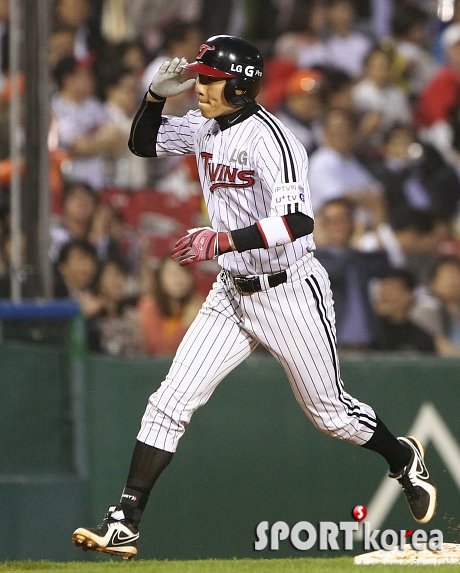‘2013 한국 야쿠르트 세븐 프로야구’ LG 트윈스와 한화 이글스의 경기가 29일 오후 서울 잠실야구장에서 열렸다. 4회말 LG 선두타자 권용관이 한화 이태양을 상대로 솔로홈런을 친 후 그라운드를 돌며 세레모니를 하고 있다.