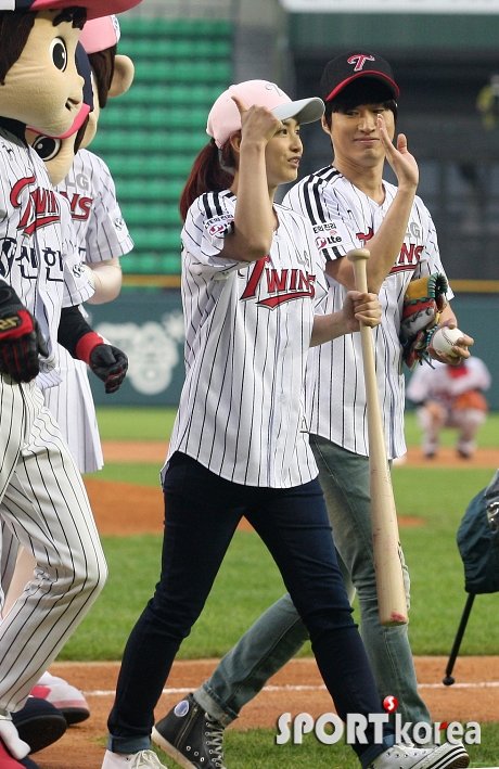 `2013 한국 야쿠르트 세븐 프로야구` LG 트윈스와 한화 이글스의 경기가 29일 오후 서울 잠실야구장에서 열렸다. 경기전 시구시타를 한 타블로, 강혜정 부부가 팬들을 향해 손을 흔들고 있다.