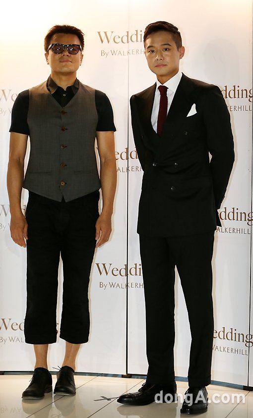 가수 박진영(왼쪽)과 배우 천정명이 2일 오후 서울 광진구 쉐라톤워커힐호텔에서 올린 백지영-정석원 결혼식에 참석에 앞서 포토타임을 하고 있다.