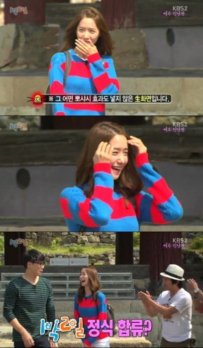 윤아는 2일 방송된 KBS 2TV ‘해피선데이-1박 2일’에 성시경을 대신해 허영만 화백과 함께 특별 게스트로 출연했다.