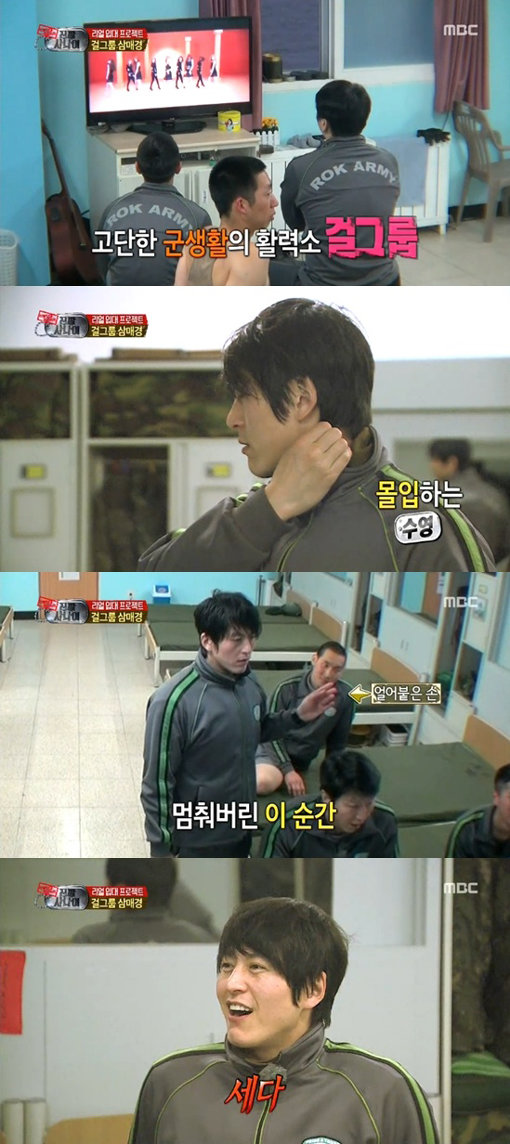 특히 이날 방송에서는 정신교육을 받고 있는 군인들 앞으로 걸스데이가 나타나 위문공연을 펼쳤다.