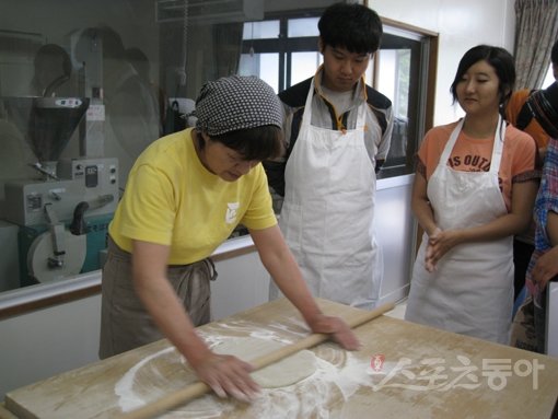 대마도는 일본 본토에서도 알아주는 메밀의 고장이다. 당연히 소바(메밀가루로 만든 일본 면요리)가 맛있다. 이즈하라에 위치한 타쿠미 식당에서는 손님이 직접 자신이 먹을 소바를 반죽해 만들어 볼 수 있는 체험(사진)을 할 수 있다. 100% 메밀가루만을 사용해 은은한 메밀향이 일품. 따끈한 닭고기 육수에 말아먹거나 우리나라에서도 익숙한 냉메밀로 먹을 수 있다. 한 그릇 700엔(8000원). 체험을 원하면 1000엔(11200원·소바 포함)을 내면 된다.