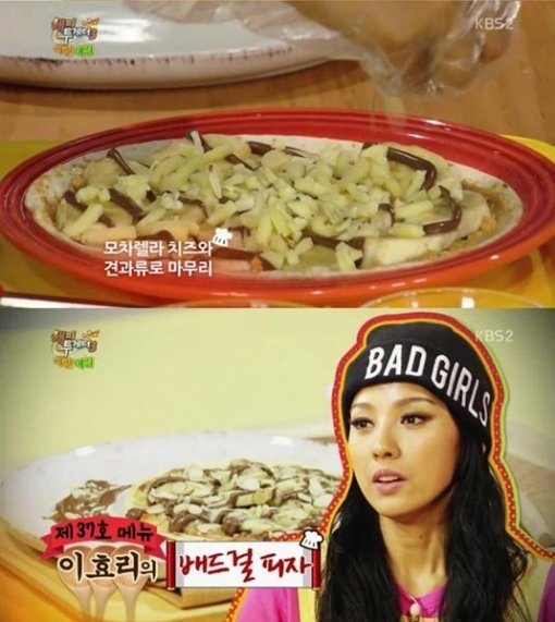 이효리는 지난 6일 방송된 KBS2TV ‘해피투게더 시즌3’ 코너 야간매점 메뉴로 ‘배드걸 피자’를 선보였고 야간매점 메뉴로 등극했다.