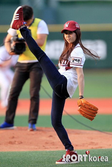7일 오후 서울 목동구장에서 열린 `2013 한국야쿠르트 세븐 프로야구` 넥센 히어로즈와 KIA 타이거즈의 경기에서 뮤지컬배우 선우가 시구하고 있다.