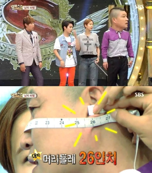 강호동은 6월 8일 방송된 SBS ‘놀라운대회 스타킹’(스타킹, MC 강호동 붐)에서 머리둘레 굴욕을 당했다.