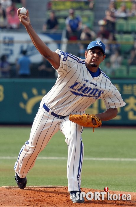 9일 오후 대구 시민야구장에서 열린 ‘2013 한국 야쿠르트 세븐 프로야구’ 삼성 라이온즈와 두산 베어스의 경기에서 삼성 선발 로드리게스가 역투하고 있다.