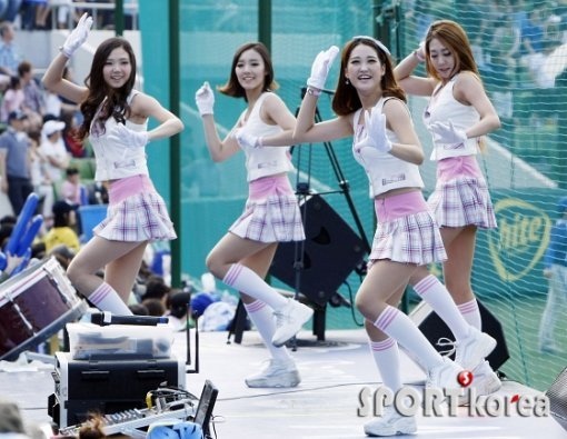 9일 오후 대구 시민야구장에서 열린 `2013 한국 야쿠르트 세븐 프로야구` 삼성 라이온즈와 두산 베어스의 경기에서 삼성 치어리더가 열띤 응원전을 펼치고 있다.