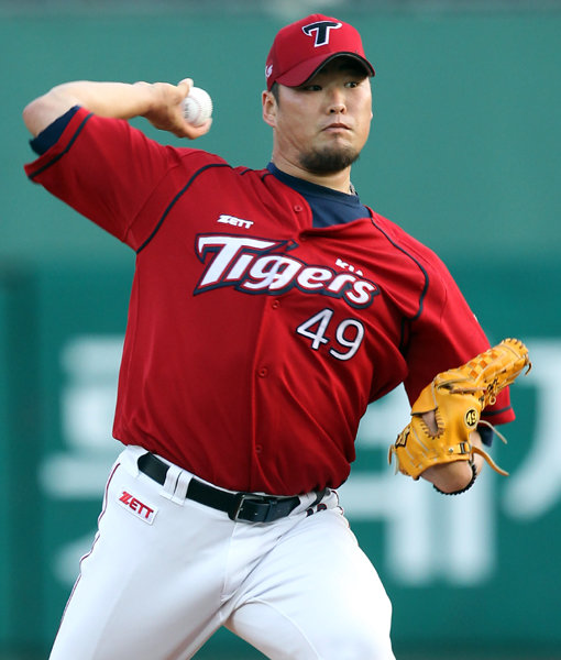 8일 승리투수가 된 양현종(5.1이닝 4실점·7승1패)에 이어 9일 선발로 나선 김진우는 무너진 선발왕국을 이끄는 ‘쌍두마차’답게 어느 때보다 강한 집중력으로 마운드를 지배했다. 4회 박병호∼강정호∼이성열을 연속 삼진으로 돌려세우는 등 빼어난 구위로 넥센 타선을 압도했다. 6회 1사 만루 위기를 벗어난 뒤 승리를 확신한 듯 힘차게 포효하기도 했다. 시즌 개인 최다인 7.1이닝을 던져 2점만 내주며 시즌 5승(4패)째를 올렸다. 1승 이상의 의미를 지닌 값진 승리를 팀에 선물했다.