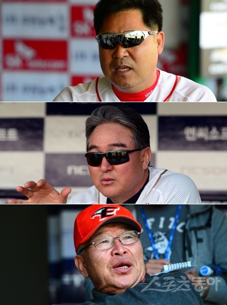 SK 이만수 감독-NC 김경문 감독-한화 김응룡 감독(위에서 아래로). 스포츠동아DB