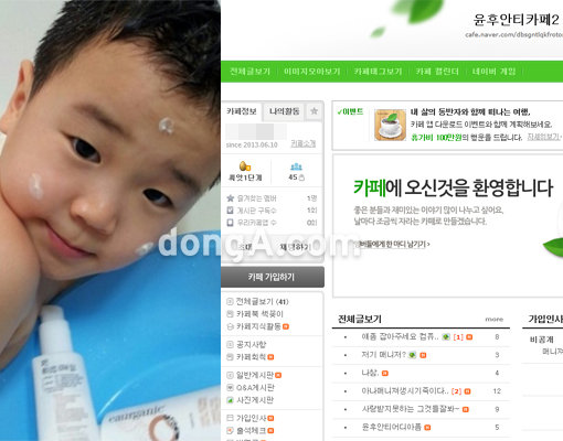 또 다른 포털사이트에도 ‘윤후 안티카페’라는 이름으로 지난 4월에 개설된 카페가 운영 중인 것으로 확인돼 누리꾼들을 분노케 하고 있다.