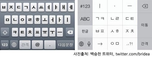 애플이 미국 샌프란시스코에서 열린 WWDC(세계개발자회의) 2013에서 애플 차기 운영체제인 iOS7을 공개했다. iOS7의 달라진 점 중 눈에 띄는 것은 한글 입력방식으로 ‘천지인’을 지원한다는 것이다. 현재 개발자용으로 공개한 iOS7에는 천지인 자판이 탑재됐으며, 올가을 iOS7 정식 버전에도 탑재될 가능성이 높다. 지금까지 한글 입력방식으로 두벌식 쿼티(QWERTY)자판만 지원하던 것을 생각하면 이는 많은 아이폰 사용자가 반길 일이다. 작은 화면에서 쿼티 자판을 사용하면 오타가 자주 발생하며, 한 손으로 텍스트를 입력하기 불편하기 때문이다.