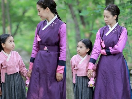 공개된 사진에는 극 중 맡은 캐릭터 ‘홍다인’의 한복을 입은 송지효가 김유빈의 손을 잡고 다정한 눈빛으로 바라보는 모습과, 나머지 한 장에서는 두 사람이 똑같이 뾰로통한 표정으로 같은 곳을 응시하고 있는 모습이 담겨있다.