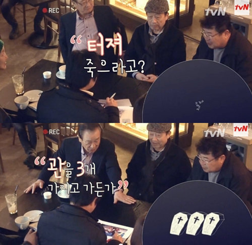 이어 나 PD가 “그럼 스카이 다이빙은 어떠시냐. 이건 힘드시겠냐”고 하자 이순재는 “그건 관을 3개 준비하고 찍어야 할 것”이라고 답해 나 PD를 당황케 만들었다.