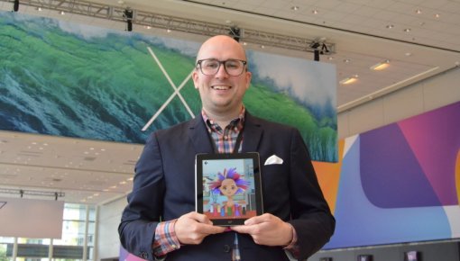 그가 가방에서 꺼낸 아이폰으로 앱을 실행하자 화면에 귀여운 소녀가 등장했다. 그리고 화면 하단을 터치하자 여러 패턴의 무늬가 나타났는데, 해당 무늬를 선택해 소녀의 옷을 갈아 입힌다. 마치, 인형놀이를 연상케 하는 앱. 이걸로 끝이 아니다. 그는 아이폰 카메라로 옆 사람의 옷을 찍었다. 그러자 옷의 무늬가 그대로 화면에 나타났고, 해당 옷으로 화면 속 소녀의 옷을 갈아입힌다. 아이들이 조금이라도 생각하고, 상상하며, 움직일 수 있도록 기획한 것이다.