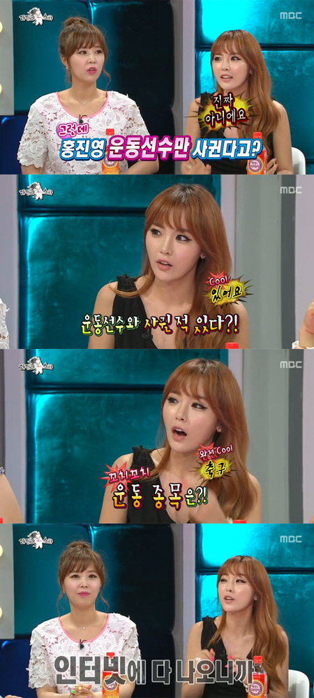 MC 김구라는 홍진영에게 "운동선수만 사귄다는 소문이 있다"고 말하자 홍진영은 "진짜 아니다. 사귄 적은 있다"라고 해명했다.