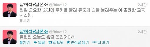 류현진의 3루타는 많은 이야깃거리를 만들었다. 특히 개그맨 남희석의 멘트가 인상적이다. 평소 류현진의 전 소속팀 한화 이글스의 열성팬이자 류현진을 좋아하는 남희석은 자신의 트위터를 통해 “류현진, 오늘도 홈런 못친거야?”라는 짧은 글을 남겼다. 데뷔 첫 3루타를 개그맨답게 유쾌하게 칭찬한 것.