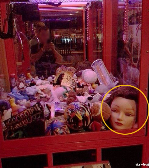 그런데 수 많은 상품들 중 마치 마네킹의 머리만 떼어놓은 듯한 ‘큰 머리 인형’이 놓여 있어 섬뜩함을 자아냈다.