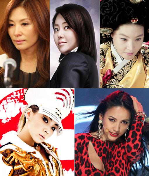 이미숙, 고현정, 박지영이 이효리와 씨엘(맨 위 왼쪽 위부터 시계방향으로) 등 가수들이 몰고온 ‘배드걸’(bad girl) 바람을 안방극장으로 몰고 온 주인공들. 각각 뚜렷한 개성으로 시청자의 시선을 모으고 있다. 사진제공|KBS·MBC·비투엠엔터테인먼트·YG엔터테인먼트