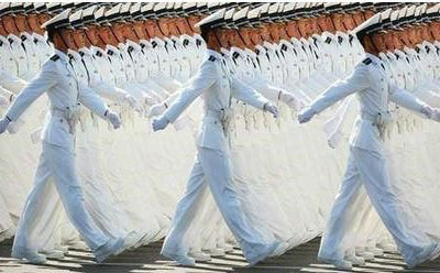 게시물의 사진에는 오와 열을 맞춰 행진하는 군인들의 모습이 보인다. 군인들은 마치 컴퓨터로 복사 후 붙여넣기 작업을 한 듯 반듯한 열로 행진하고 있다.