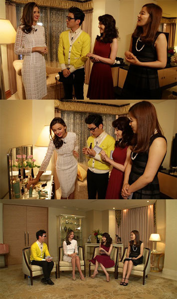 미란다 커는 ‘서인영의 스타뷰티쇼’를 통해 자신의 파우더 룸을 공개하며 세계적인 톱 모델의 뷰티 아이템을 직접 엿볼 수 있는 기회를 한국 팬들에게 선사했다. 미란다 커는 직접 화장대 위의 아이템들을 하나씩 소개하며 제작진에게 설명하는 정성을 보였다.