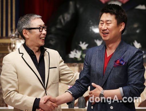 토크쇼 원조 국민MC 서세원이 돌아왔다. 방송인 서세원(왼쪽)과 남희석이 18일 서울 강서구 CU미디어 스튜디어에서 열린 종합편성채널 채널A 프로그램 ‘서세원 남희석의 여러가지 연구소’ 기자간담회에서 포토타임을 하고 있다.