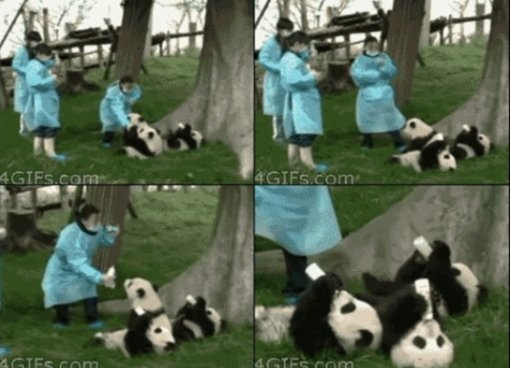 사진을 보면 사육사로 보이는 사람들이 아기 판다들에게 젖병을 나눠주고 있다. 판다들은 이내 젖병을 받아들고는 편안하게 누워 스스로 젖병을 빤다.