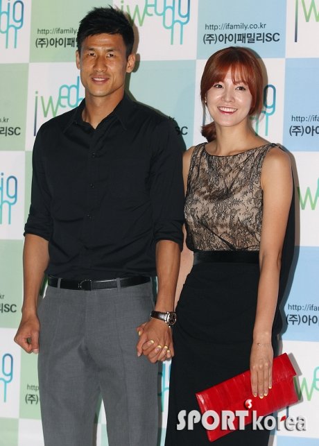 축구선수 구자철(24, 아우크스부르크)이 22일 오후 서울 광진구 광장동 세라톤 워커힐호텔 비스타홀에서 결혼식을 올린다. 하객으로 참석한 정조국, 김성은 부부가 포토타임을 갖고 있다.
